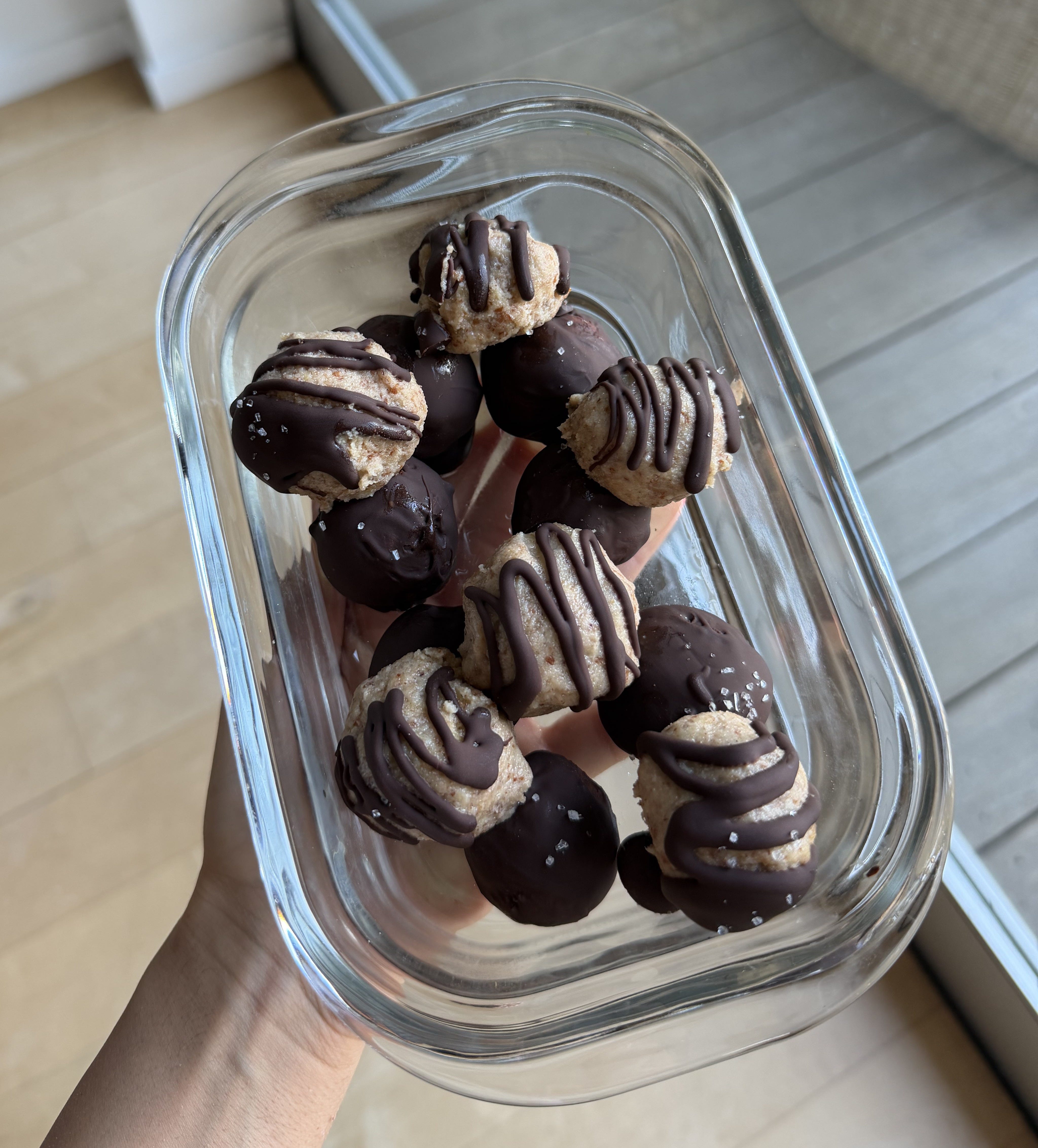 These are one of my favorite ways to use leftover almond pulp from homemade almond milk. They’re packed with protein, naturally sweet, and taste like a peanut butter cup once you dunk them in dark chocolate!! I am completely obsessed.